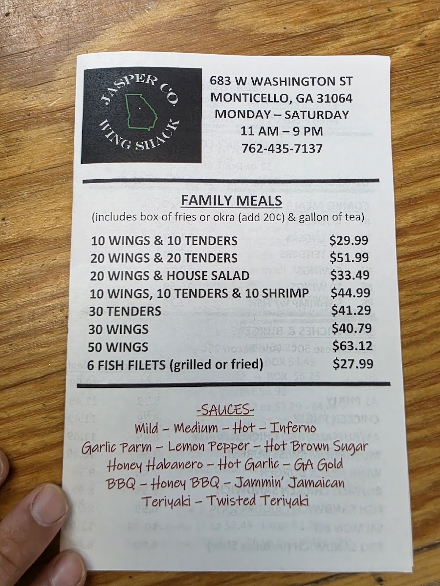 Welcome to Jasper County Wing Shack, where flavorful wings and hearty comfort food meet! Located at 683 W Washington St, Monticello, GA, this hidden gem has swiftly become a local favorite for its robust menu and inviting atmosphere.